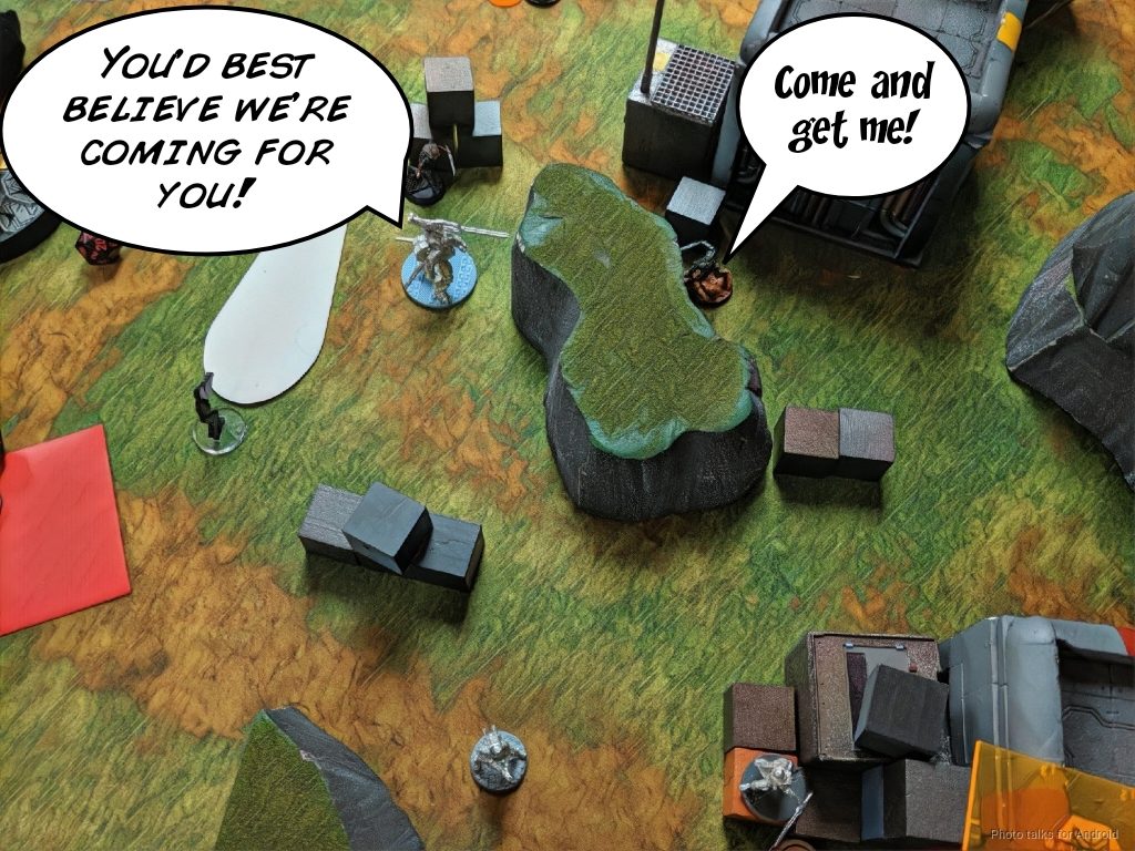 So, Erik’s down a Muyib HRL, Muyib Doctor, Lasiq VSR, and Farzan something at the end of my turn, and killing the Lasiq also disconnects his Xenotech. Great! I throw my Lieutenant into suppression, hoping to bait him to go after it with the Fiday, which is risky but probably fine? I dunno.