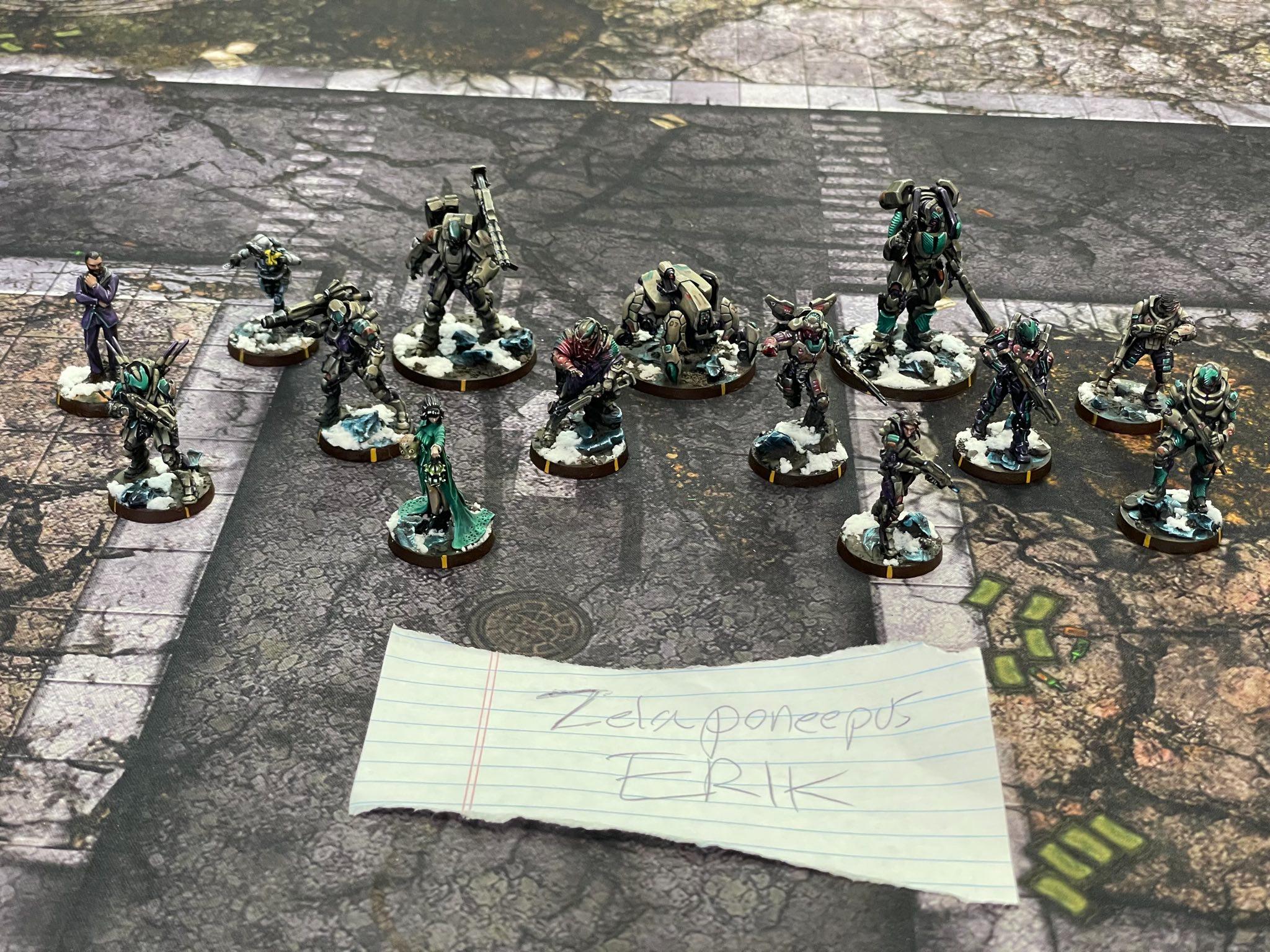 Brady puts the Spektr down to attack my Lieutenant and I put I think it was the Grenzer down to help fight off the Spektr. We both choose our Hollowmen as our Key Ops.