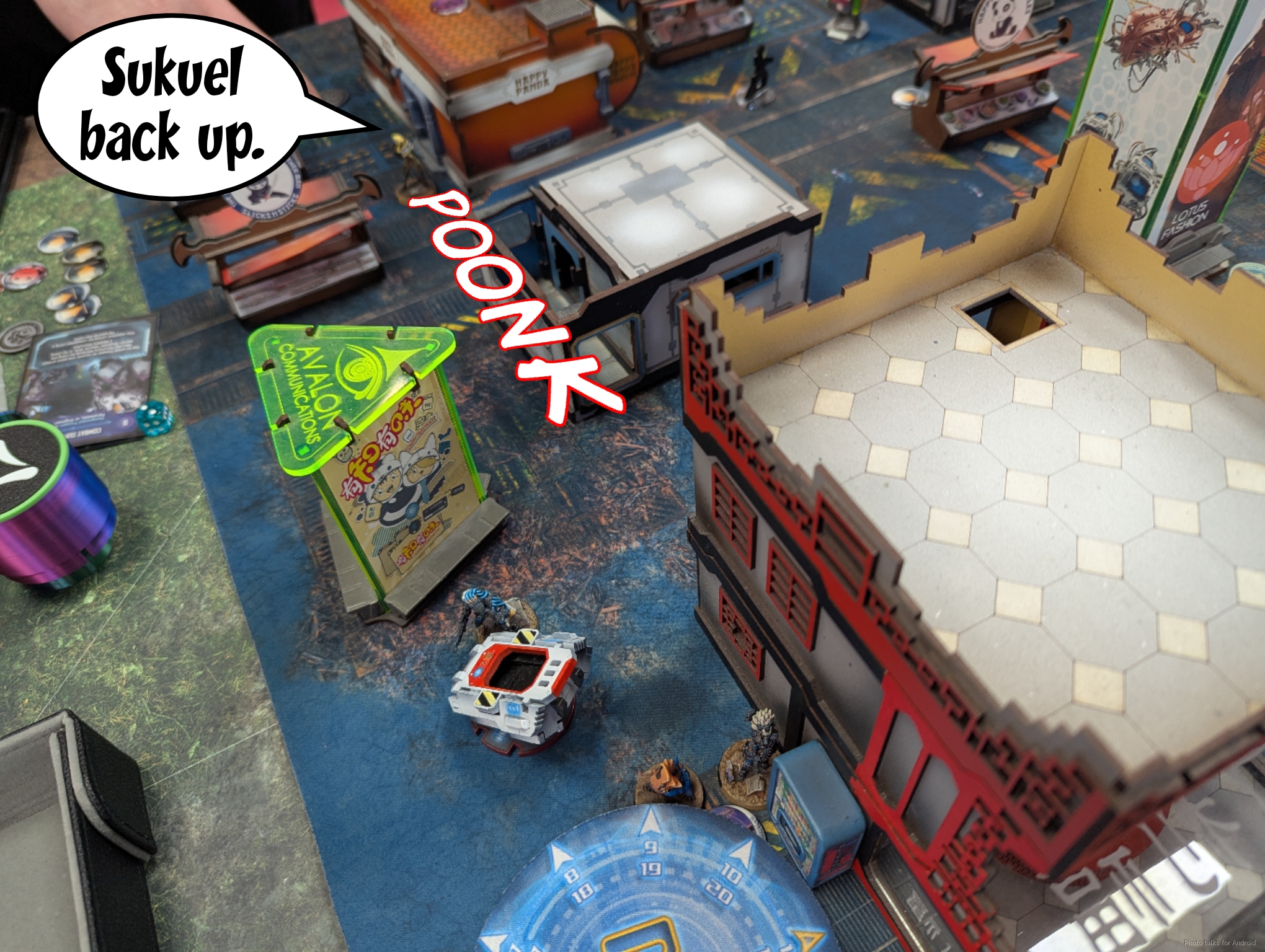 I take two orders from the group with the Samsa, intending to limit the damage. Obi starts by taking the impetuous move with the MBH, dodging as I take a shot. I’m on 6s, so I whiff and the MBH makes it to cover.